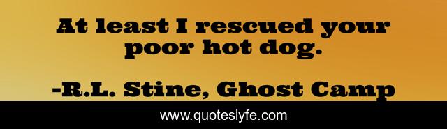 This page presents the quote "At least I rescued your poor hot dog.". Author of this quote is R.L. Stine, Ghost Camp. This quote is about teenage, madness, gives-me-the-willies, spooky, wiener, laugh, disturbing, funny, humor,.