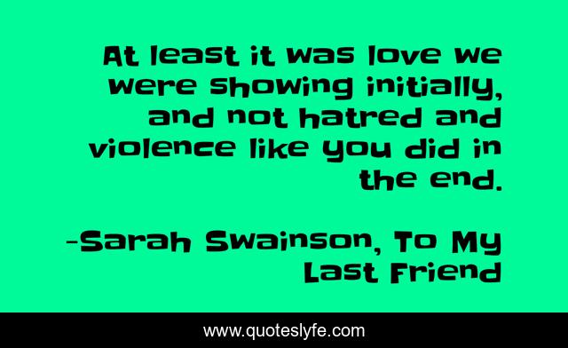 This page presents the quote "At least it was love we were showing initially, and not hatred and violence like you did in the end.". Author of this quote is Sarah Swainson, To My Last Friend. This quote is about drama, relationships-advice, love, family, affection,.