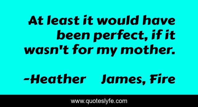 This page presents the quote "At least it would have been perfect, if it wasn't for my mother.". Author of this quote is Heather James, Fire. This quote is about fire, elements-of-power, roxy, mother,.