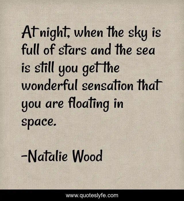 This page presents the quote "At night, when the sky is full of stars and the sea is still you get the wonderful sensation that you are floating in space.". Author of this quote is Natalie Wood. This quote is about sky, stars, sea,.