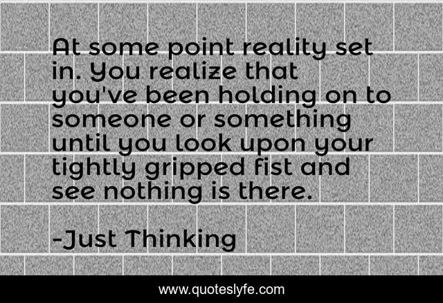 This page presents the quote "At some point reality set in. You realize that you've been holding on to someone or something until you look upon your tightly gripped fist and see nothing is there.". Author of this quote is Just Thinking. .