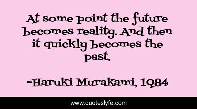 This page presents the quote "At some point the future becomes reality. And then it quickly becomes the past.". Author of this quote is Haruki Murakami, 1Q84. This quote is about past, future, present,.