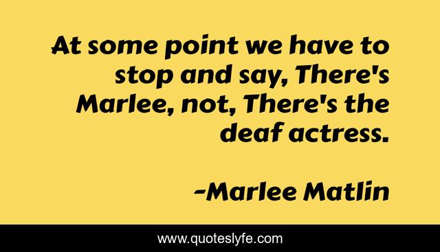 This page presents the quote "At some point we have to stop and say, There's Marlee, not, There's the deaf actress.". Author of this quote is Marlee Matlin. This quote is about deaf, stop,.