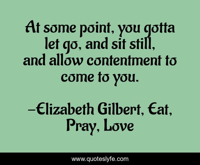 This page presents the quote "At some point, you gotta let go, and sit still, and allow contentment to come to you.". Author of this quote is Elizabeth Gilbert, Eat, Pray, Love. .