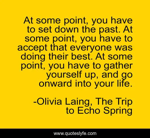 This page presents the quote "At some point, you have to set down the past. At some point, you have to accept that everyone was doing their best. At some point, you have to gather yourself up, and go onward into your life.". Author of this quote is Olivia Laing, The Trip to Echo Spring. This quote is about past, forgiveness, moving-on,.
