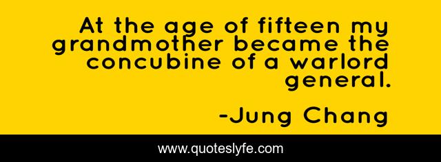 This page presents the quote "At the age of fifteen my grandmother became the concubine of a warlord general.". Author of this quote is Jung Chang. This quote is about grandmother, general,.