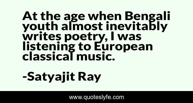 This page presents the quote "At the age when Bengali youth almost inevitably writes poetry, I was listening to European classical music.". Author of this quote is Satyajit Ray. This quote is about youth, age, poetry,.