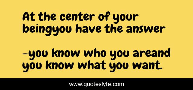 This page presents the quote "At the center of your beingyou have the answer". Author of this quote is you know who you areand you know what you want.. .