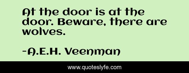 This page presents the quote "At the door is at the door. Beware, there are wolves.". Author of this quote is A.E.H. Veenman. This quote is about spiritual, philosophy, wisdom,.