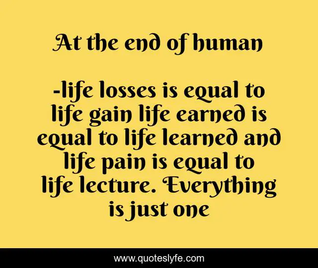 "life losses is equal to life gain life earned is equal to life learned and life pain is equal to life lecture. Everything is just one Quotes." Quoteslyfe.com, 2025. Sat. 06 Dec. 2025. <https://www.quoteslyfe.com/quote/At-the-end-of-human-250759>.