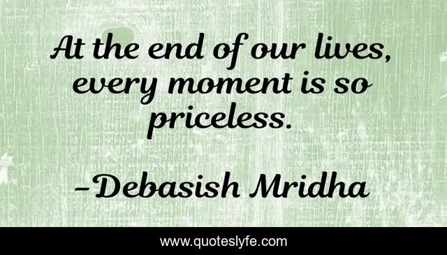 This page presents the quote "At the end of our lives, every moment is so priceless.". Author of this quote is Debasish Mridha. This quote is about philosophy, debasish-mridha, end-of-our-lives, quotes, enjoy-the-moment, inspirational, enthusiasm, debasish-mridha-m-d, time-is-priceless,.