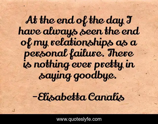 This page presents the quote "At the end of the day I have always seen the end of my relationships as a personal failure. There is nothing ever pretty in saying goodbye.". Author of this quote is Elisabetta Canalis. This quote is about end, day, goodbye,.