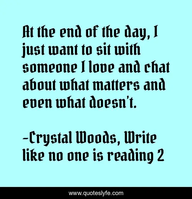 "Crystal Woods, Write like no one is reading 2 Quotes." Quoteslyfe.com, 2025. Fri. 05 Dec. 2025. <https://www.quoteslyfe.com/quote/At-the-end-of-the-day-I-86479>.