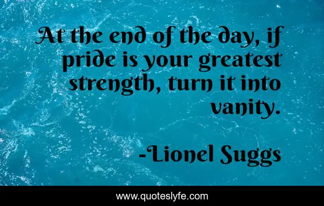 This page presents the quote "At the end of the day, if pride is your greatest strength, turn it into vanity.". Author of this quote is Lionel Suggs. This quote is about pride, vanity,.