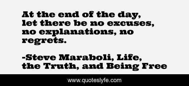 This page presents the quote "At the end of the day, let there be no excuses, no explanations, no regrets.". Author of this quote is Steve Maraboli, Life, the Truth, and Being Free. This quote is about gratitude, life, success, appreciation, positive, motivational, seize-the-day, confidence, excuses,.