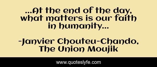 This page presents the quote "...At the end of the day, what matters is our faith in humanity...". Author of this quote is Janvier Chouteu-Chando, The Union Moujik. This quote is about joy, life, love, happiness, affection,.