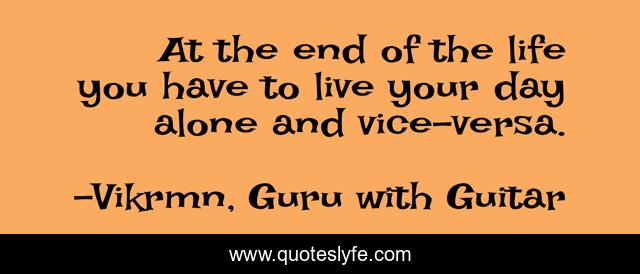 This page presents the quote "At the end of the life you have to live your day alone and vice-versa.". Author of this quote is Vikrmn, Guru with Guitar. This quote is about gwg, end, positive, motivational, life, ca-vikram-verma, guru-with-guitar, live, vikrmn,.