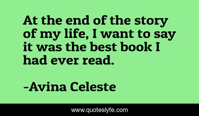 This page presents the quote "At the end of the story of my life, I want to say it was the best book I had ever read.". Author of this quote is Avina Celeste. This quote is about life, positive, motivational, story, books, optimistic, inspirational, enthusiasm, confidence,.