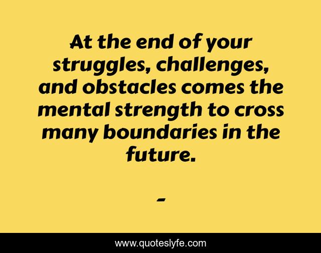 This page presents the quote "At the end of your struggles, challenges, and obstacles comes the mental strength to cross many boundaries in the future.". Author of this quote is . This quote is about the-future, mental-strength, challenge, struggles, your-obstacles, challenges, edmond-mbiaka, obstacle, breaking-boundaries,.