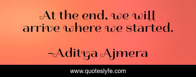 This page presents the quote "At the end, we will arrive where we started.". Author of this quote is Aditya Ajmera. This quote is about ambition, reality-of-life, emptiness, life, attachment,.
