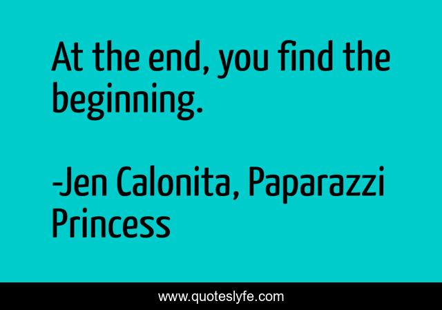 This page presents the quote "At the end, you find the beginning.". Author of this quote is Jen Calonita, Paparazzi Princess. This quote is about beginning, paparazzi-princess, end, jen-calonita, secrets-of-my-hollywood-life,.