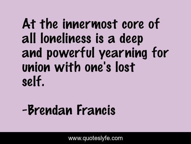 This page presents the quote "At the innermost core of all loneliness is a deep and powerful yearning for union with one's lost self.". Author of this quote is Brendan Francis. This quote is about yearning, loneliness, self,.