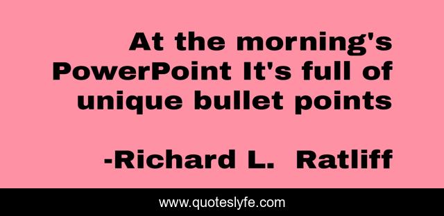 "Richard L. Ratliff Quotes." Quoteslyfe.com, 2025. Tue. 09 Dec. 2025. <https://www.quoteslyfe.com/quote/At-the-morning-s-PowerPoint-It-s-238121>.