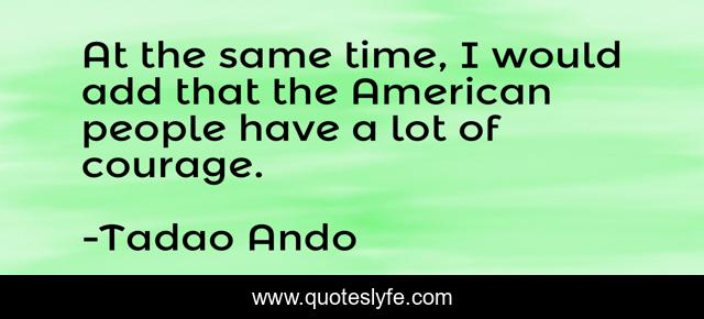 This page presents the quote "At the same time, I would add that the American people have a lot of courage.". Author of this quote is Tadao Ando. This quote is about american, time, people,.
