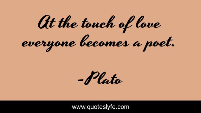 This page presents the quote "At the touch of love everyone becomes a poet.". Author of this quote is Plato. This quote is about touch, everyone,.