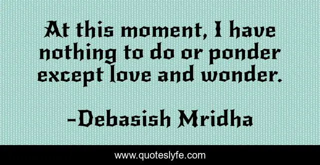 This page presents the quote "At this moment, I have nothing to do or ponder except love and wonder.". Author of this quote is Debasish Mridha. This quote is about love, philosophy, debasish-mridha, quotes, debasish-mridha-md, inspirational, enthusiasm, love-and-wonder, nothing-to-do-but-love,.