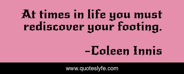 This page presents the quote "At times in life you must rediscover your footing.". Author of this quote is Coleen Innis. This quote is about confidence, author, positive, motivational, optimistic, inspirational, enthusiasm, coleen-innis,.
