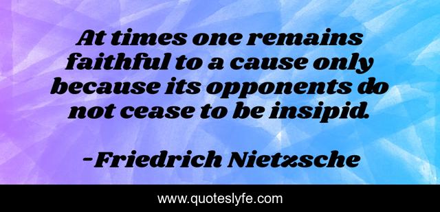 This page presents the quote "At times one remains faithful to a cause only because its opponents do not cease to be insipid.". Author of this quote is Friedrich Nietzsche. This quote is about faith, insipid, opponent,.