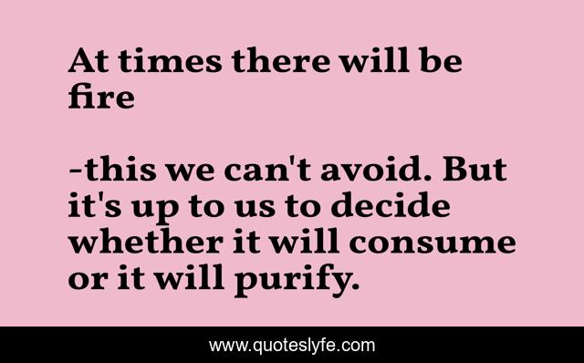 This page presents the quote "At times there will be fire". Author of this quote is this we can't avoid. But it's up to us to decide whether it will consume or it will purify.. .