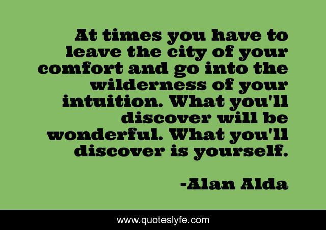 This page presents the quote "At times you have to leave the city of your comfort and go into the wilderness of your intuition. What you'll discover will be wonderful. What you'll discover is yourself.". Author of this quote is Alan Alda. .