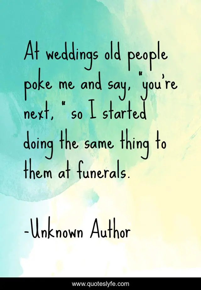 "Unknown Author Quotes." Quoteslyfe.com, 2025. Mon. 08 Dec. 2025. <https://www.quoteslyfe.com/quote/At-weddings-old-people-poke-me-and-209236>.