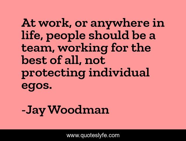 This page presents the quote "At work, or anywhere in life, people should be a team, working for the best of all, not protecting individual egos.". Author of this quote is Jay Woodman. This quote is about best-of-all, ego, team,.