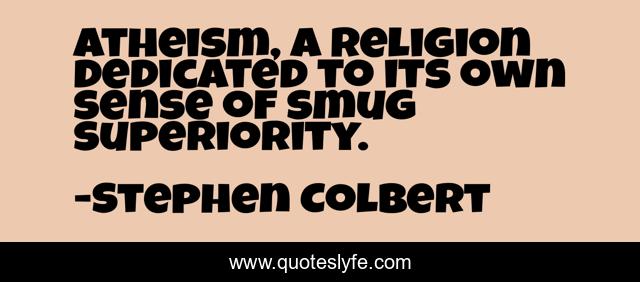 This page presents the quote "Atheism, a religion dedicated to its own sense of smug superiority.". Author of this quote is Stephen Colbert. .