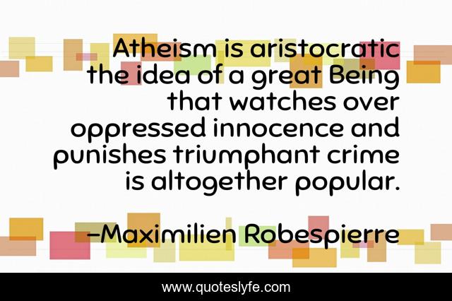 This page presents the quote "Atheism is aristocratic the idea of a great Being that watches over oppressed innocence and punishes triumphant crime is altogether popular.". Author of this quote is Maximilien Robespierre. This quote is about innocence, watches, crime,.