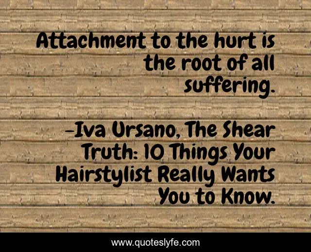 "Iva Ursano, The Shear Truth: 10 Things Your Hairstylist Really Wants You to Know. Quotes." Quoteslyfe.com, 2025. Fri. 05 Dec. 2025. <https://www.quoteslyfe.com/quote/Attachment-to-the-hurt-is-the-root-38231>.