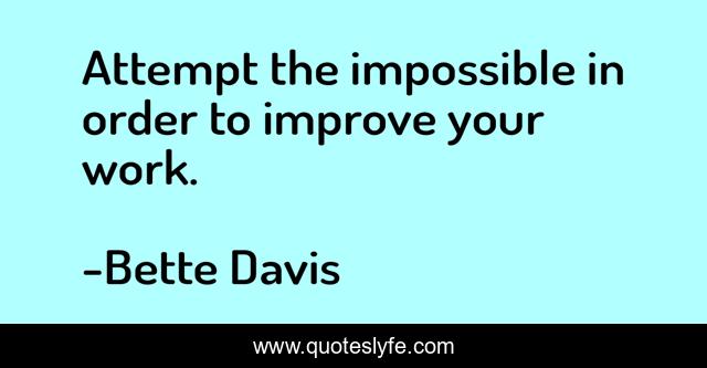 This page presents the quote "Attempt the impossible in order to improve your work.". Author of this quote is Bette Davis. .