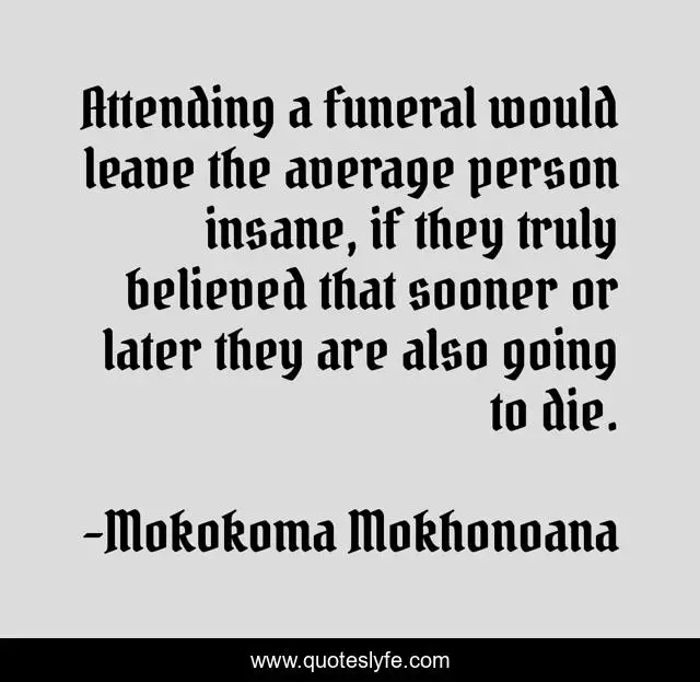 "Mokokoma Mokhonoana Quotes." Quoteslyfe.com, 2025. Sun. 07 Dec. 2025. <https://www.quoteslyfe.com/quote/Attending-a-funeral-would-leave-the-average-56225>.