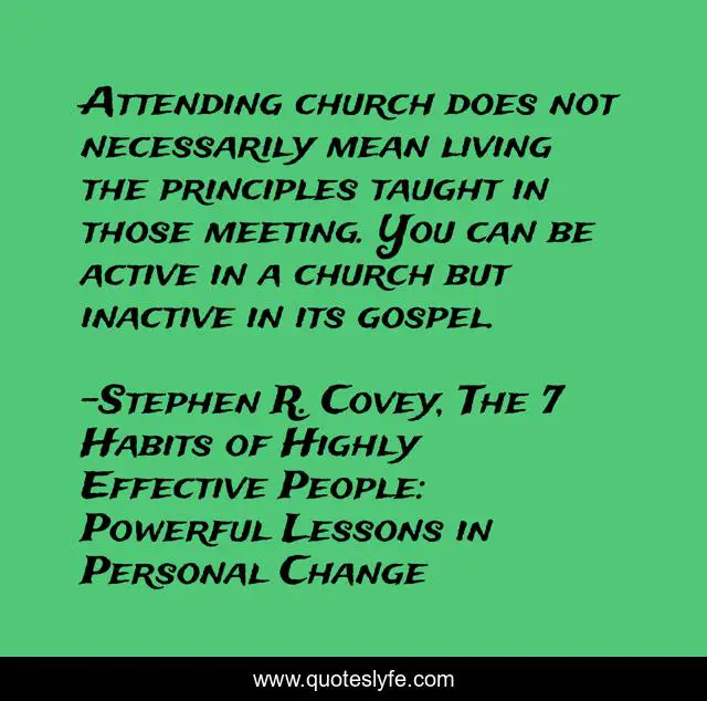 "Stephen R. Covey, The 7 Habits of Highly Effective People: Powerful Lessons in Personal Change Quotes." Quoteslyfe.com, 2025. Sun. 07 Dec. 2025. <https://www.quoteslyfe.com/quote/Attending-church-does-not-necessarily-mean-living-197159>.