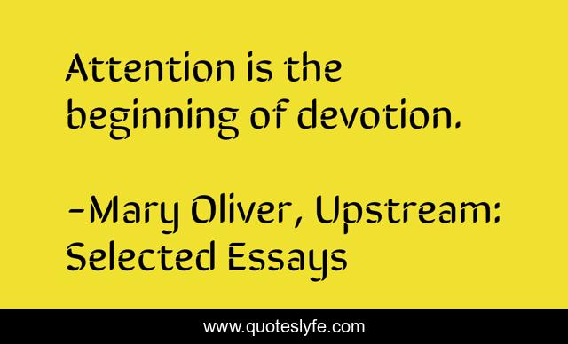 "Mary Oliver, Upstream: Selected Essays Quotes." Quoteslyfe.com, 2025. Fri. 05 Dec. 2025. <https://www.quoteslyfe.com/quote/Attention-is-the-beginning-of-devotion-15707>.