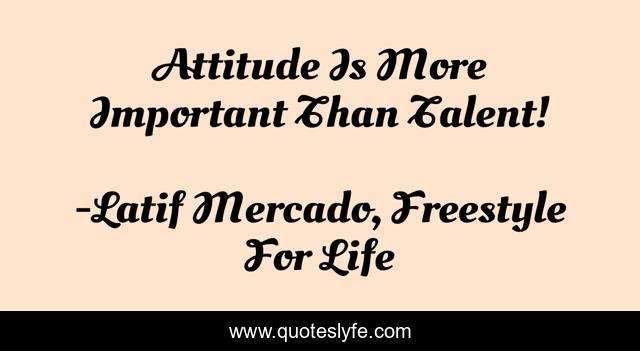 "Latif Mercado, Freestyle For Life Quotes." Quoteslyfe.com, 2025. Sat. 06 Dec. 2025. <https://www.quoteslyfe.com/quote/Attitude-Is-More-Important-Than-Talent-79765>.