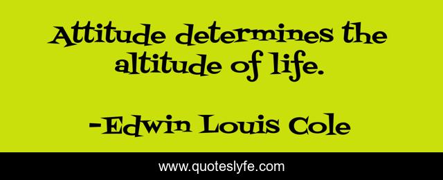 This page presents the quote "Attitude determines the altitude of life.". Author of this quote is Edwin Louis Cole. This quote is about life, determines, altitude,.