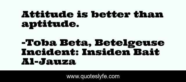"Toba Beta, Betelgeuse Incident: Insiden Bait Al-Jauza Quotes." Quoteslyfe.com, 2025. Fri. 05 Dec. 2025. <https://www.quoteslyfe.com/quote/Attitude-is-better-than-aptitude-179974>.