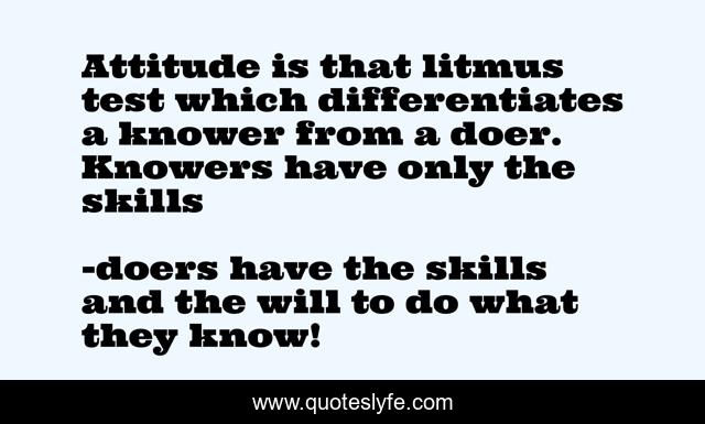 "doers have the skills and the will to do what they know! Quotes." Quoteslyfe.com, 2025. Sat. 06 Dec. 2025. <https://www.quoteslyfe.com/quote/Attitude-is-that-litmus-test-which-differentiates-129383>.