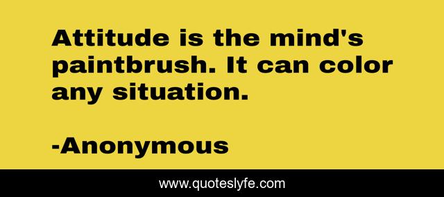 This page presents the quote "Attitude is the mind's paintbrush. It can color any situation.". Author of this quote is Anonymous. This quote is about behaviour, attitude,.