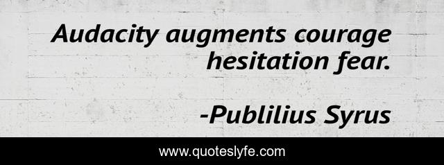 "Publilius Syrus Quotes." Quoteslyfe.com, 2025. Fri. 05 Dec. 2025. <https://www.quoteslyfe.com/quote/Audacity-augments-courage-hesitation-fear-262218>.