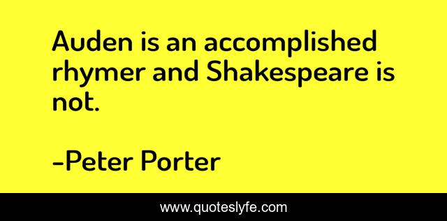 This page presents the quote "Auden is an accomplished rhymer and Shakespeare is not.". Author of this quote is Peter Porter. This quote is about rhyme, poetry, auden, shakespeare,.